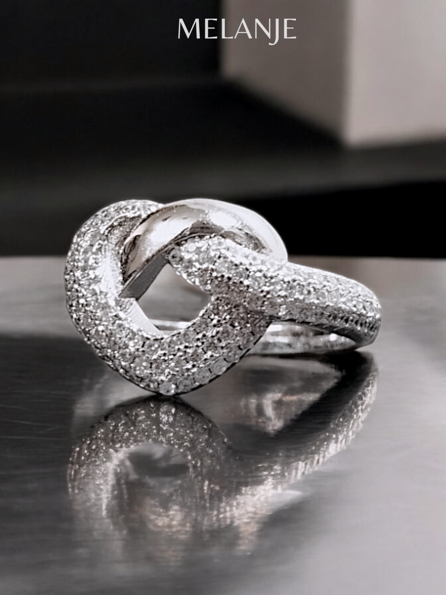 Clear Cubic Zirconia Chunky Heart Knot Ring