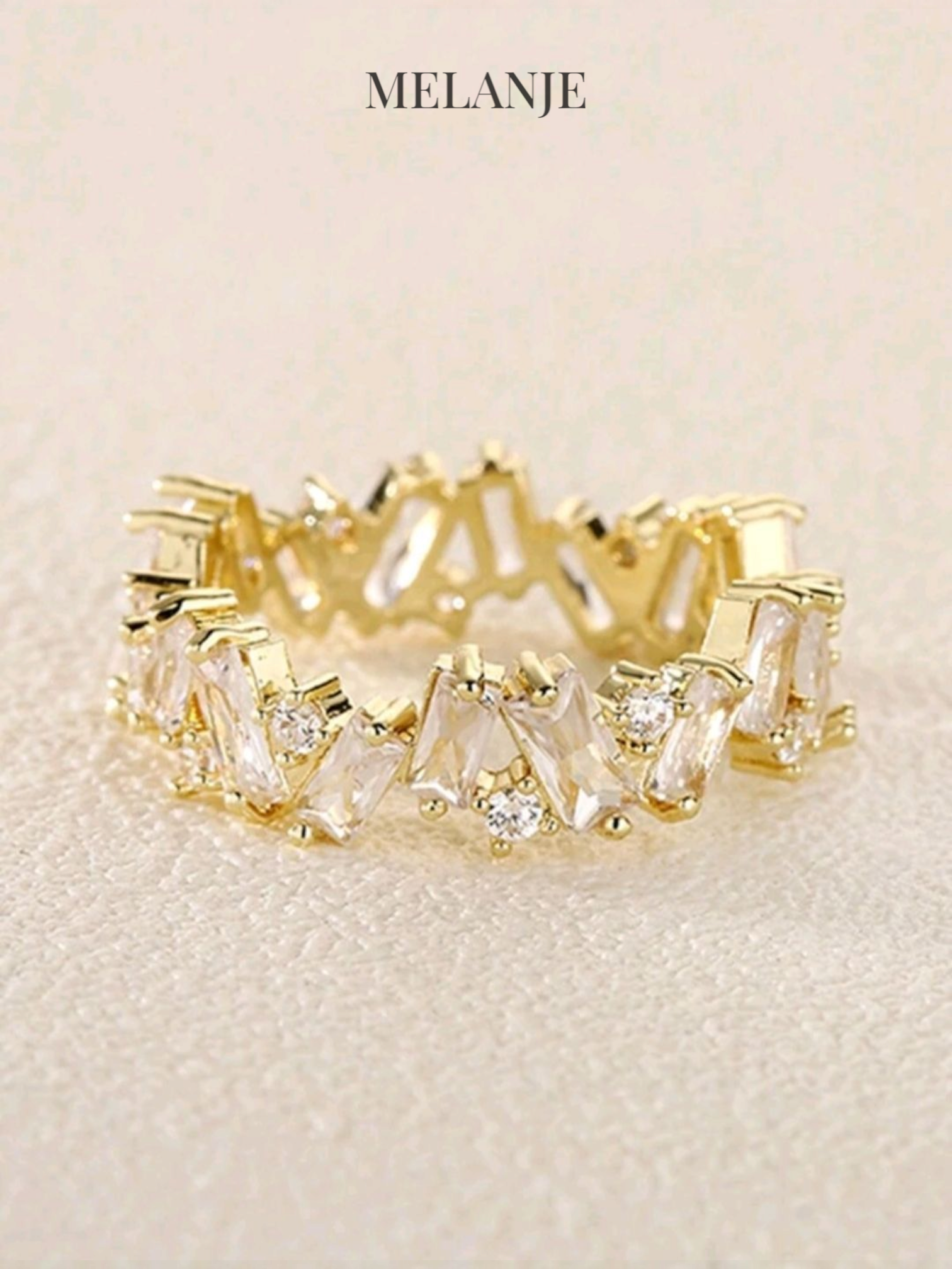 Irregular Cut Cubic Zirconia Gold Band Ring