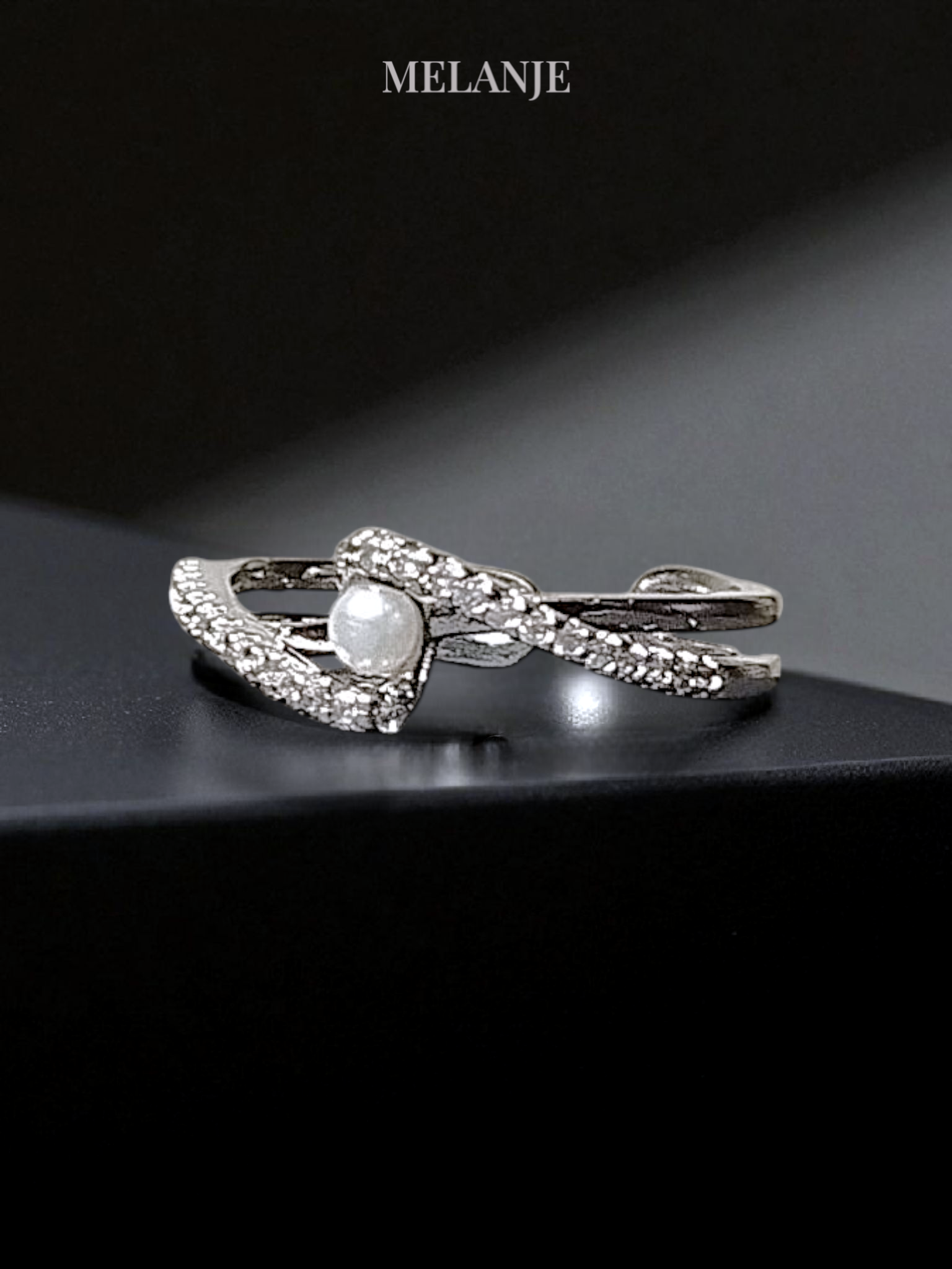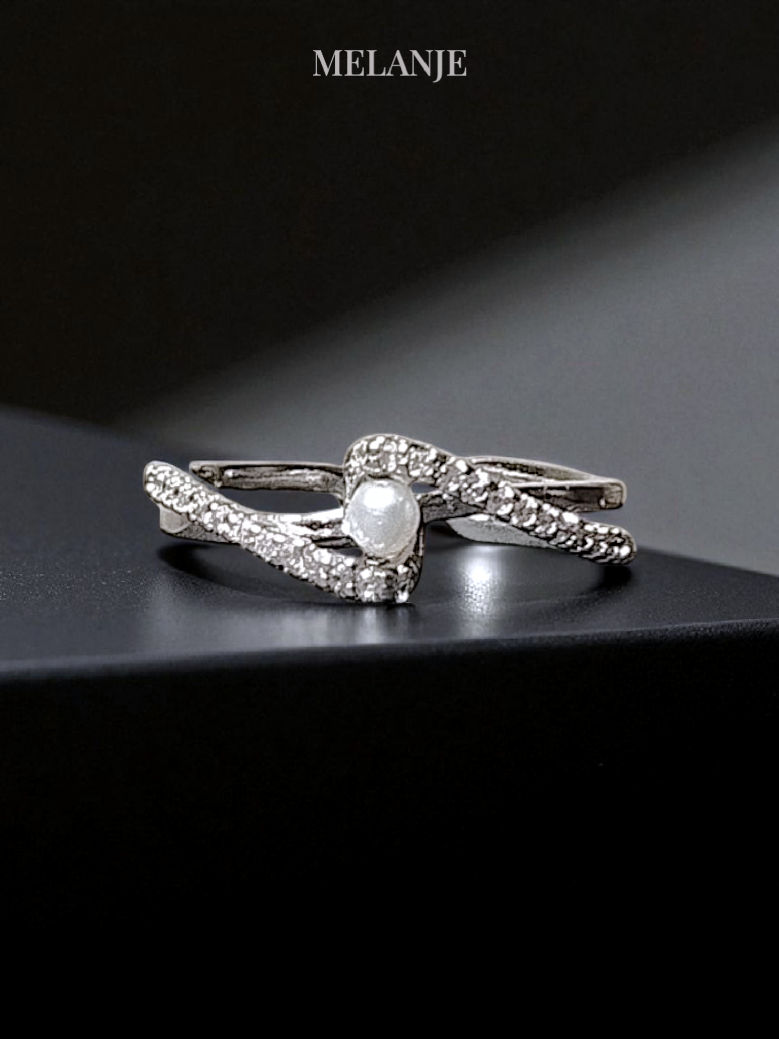 - Elegant dual-layered ring featuring sparkling cubic zirconia and a minimalistic central pearl