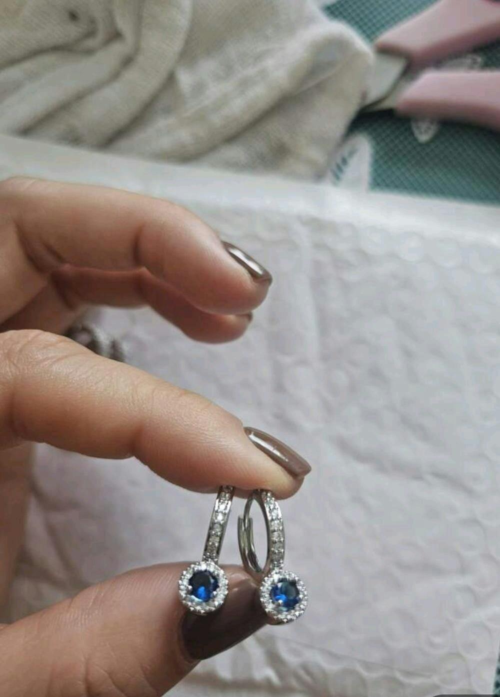 - Features a sapphire blue solitaire cubic zirconia at the center