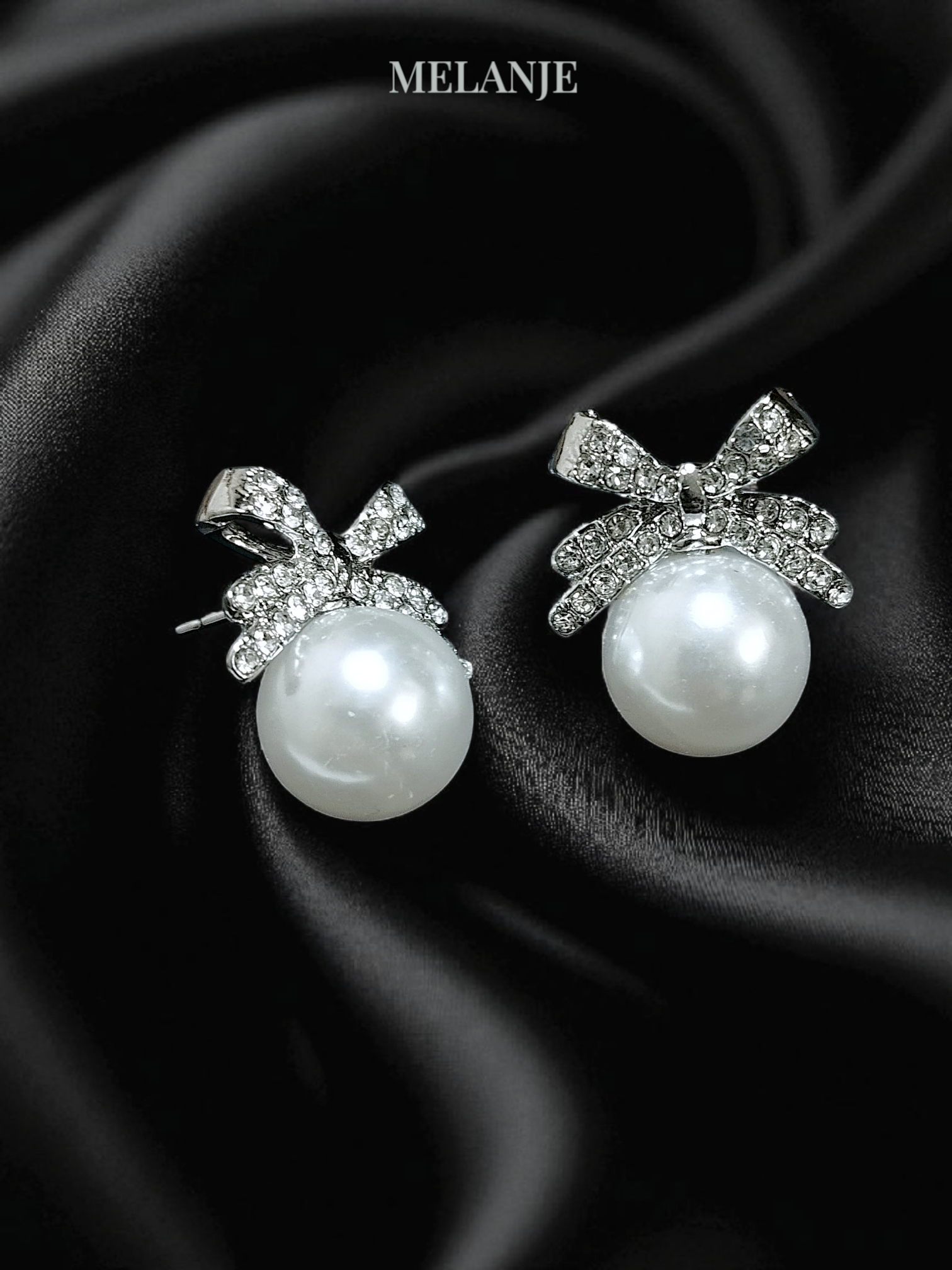 - Elegant bow-shaped stud earrings accented with sparkling cubic zirconia