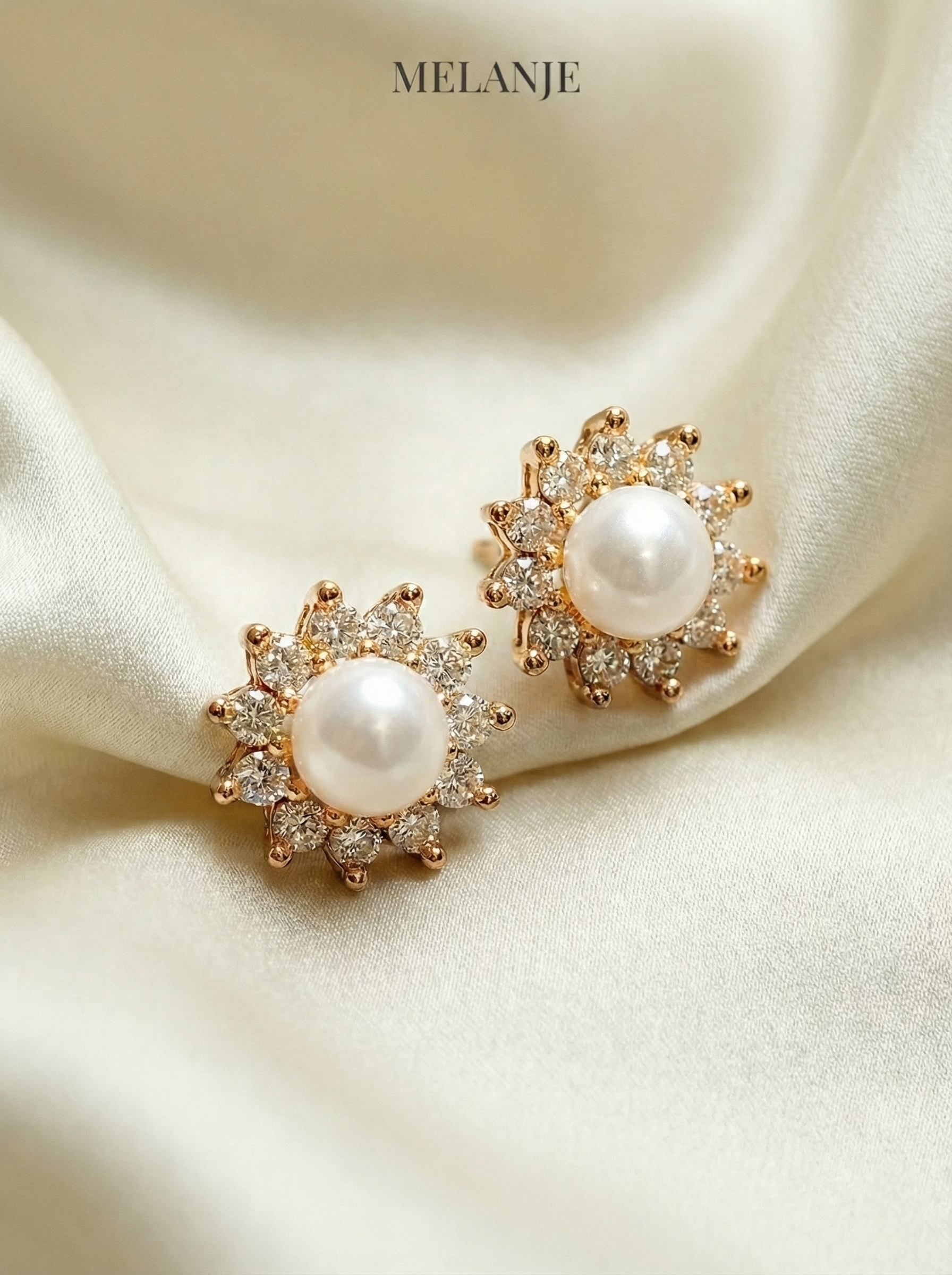 Sunflower Pearl Gold Stud Earrings