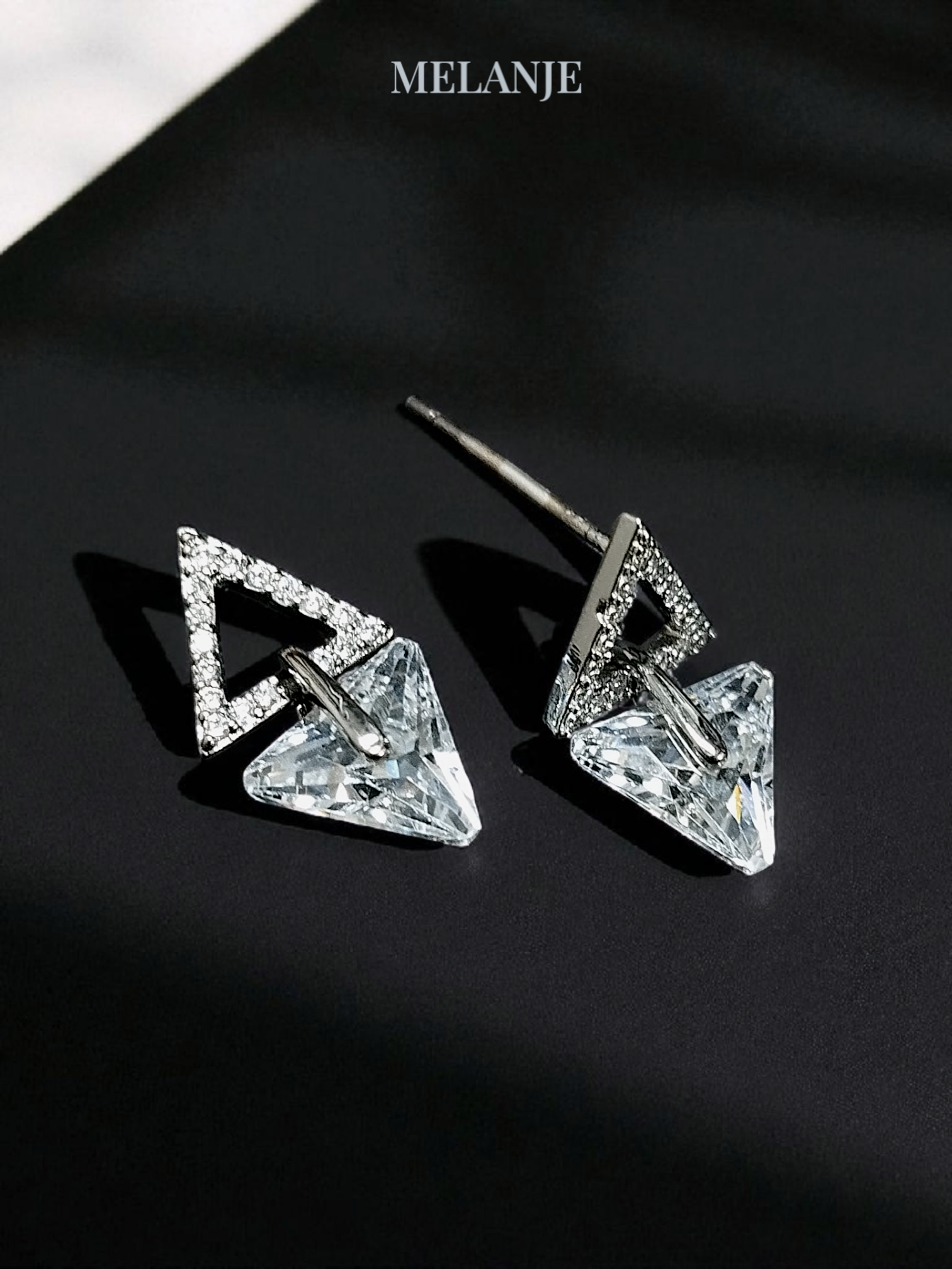 The double triangle design offers versatility, allowing these earrings to effortlessly transition from day to night, complementing both casual and formal attire with equal grace.